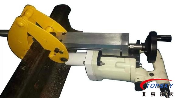 鋼軌鉆由主機(jī)、雙重?cái)嗨Wo(hù)裝置、進(jìn)口硬質(zhì)合金鋼軌鉆頭、凈化器、張緊裝置等組成,液壓膠管總成將氣源和主機(jī)連接起來,經(jīng)過凈化的氣源提供的氣壓驅(qū)動(dòng)鋼軌鉆投高速鉆進(jìn),進(jìn)行切割。灑水冷卻噴頭和雙重?cái)嗨Wo(hù)裝置起到冷卻和降塵的作用,保護(hù)機(jī)器正常運(yùn)轉(zhuǎn)。