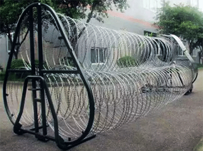 刀片鋒利,阻隔性強,不借助器械難以攀爬、翻越。整體結構穩(wěn)定,兩端為支撐框架結構,伸縮網(wǎng)和框架一體式聯(lián)接。部分產(chǎn)品底部可能帶有橡膠滾輪,可萬向調(diào)節(jié)推動,移動方便。